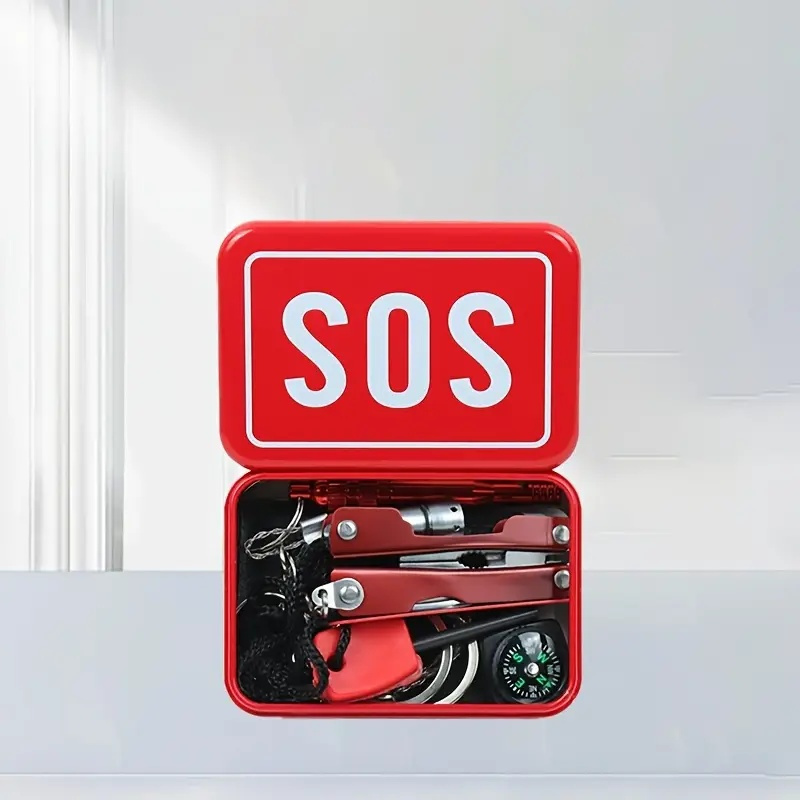 Multi-Functional Outdoor Tool Set: ​ Contains 8 practical tools (including screwdrivers, bottle openers, manuals, etc.), which meets the needs of multiple scenarios such as wild survival, camping adventures, emergency rescue, etc., and solves outdoor problems in one box.Professional Wild Survival Tool Set​: Designed for extreme environments, compactly stored in portable metal box, lightweight design does not increase burden, quickly accessed when dealing with emergencies, ensuring safety and efficiency.Striking Emergency Life-Saving Box : Use a high-recognition red metal shell + reflective SOS logo to quickly locate in emergencies, and the tools in the box are clearly divided to avoid chaos and improve rescue timeliness.Rust-Duty, Portable Design: Metal protection box is waterproof and waterproof, and can be easily placed in a backpack or car tool box; the compact size takes into account portability and tool integrity, and it is worry-free outdoors.Military-Grade Good-Quality Materials​ : All-metal tools are hardened and wear-resistant, with sharp blades and accurate snaps. They are tested to withstand high-strength use, providing reliable guarantees for outdoor adventures.
