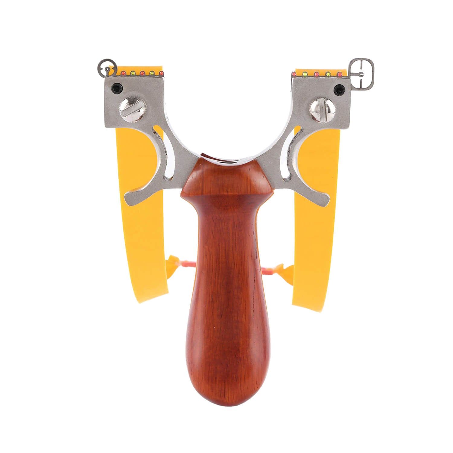 This premium tactical slingshot Ballista 06 is designed with a non-slip grip and two high tension rubber bands to provide power and aim. It is finished with a smooth, curved wooden handle for better functionality and comfort.