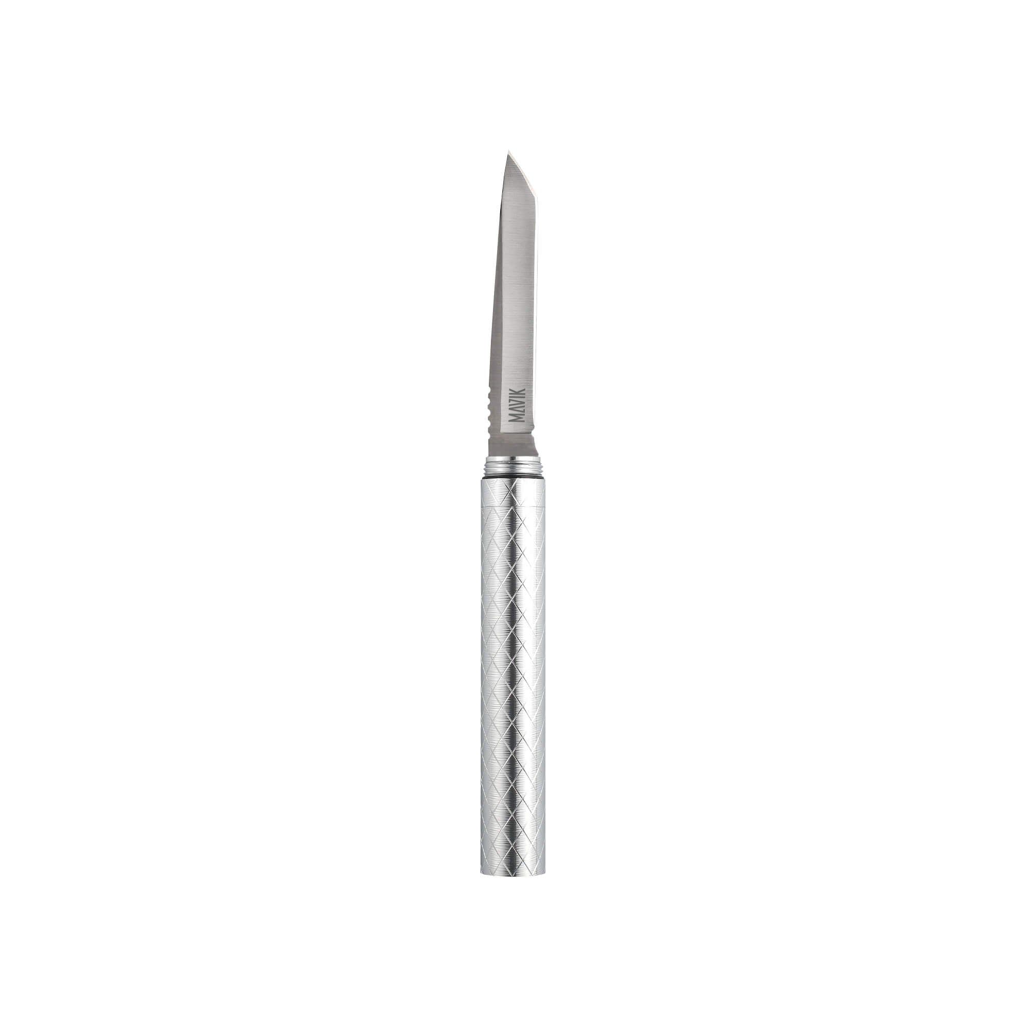 The CMPS knife is a concealable fixed-blade knife that comes in a study aluminum cylinder. This tool also features a glass breaker and a compass.