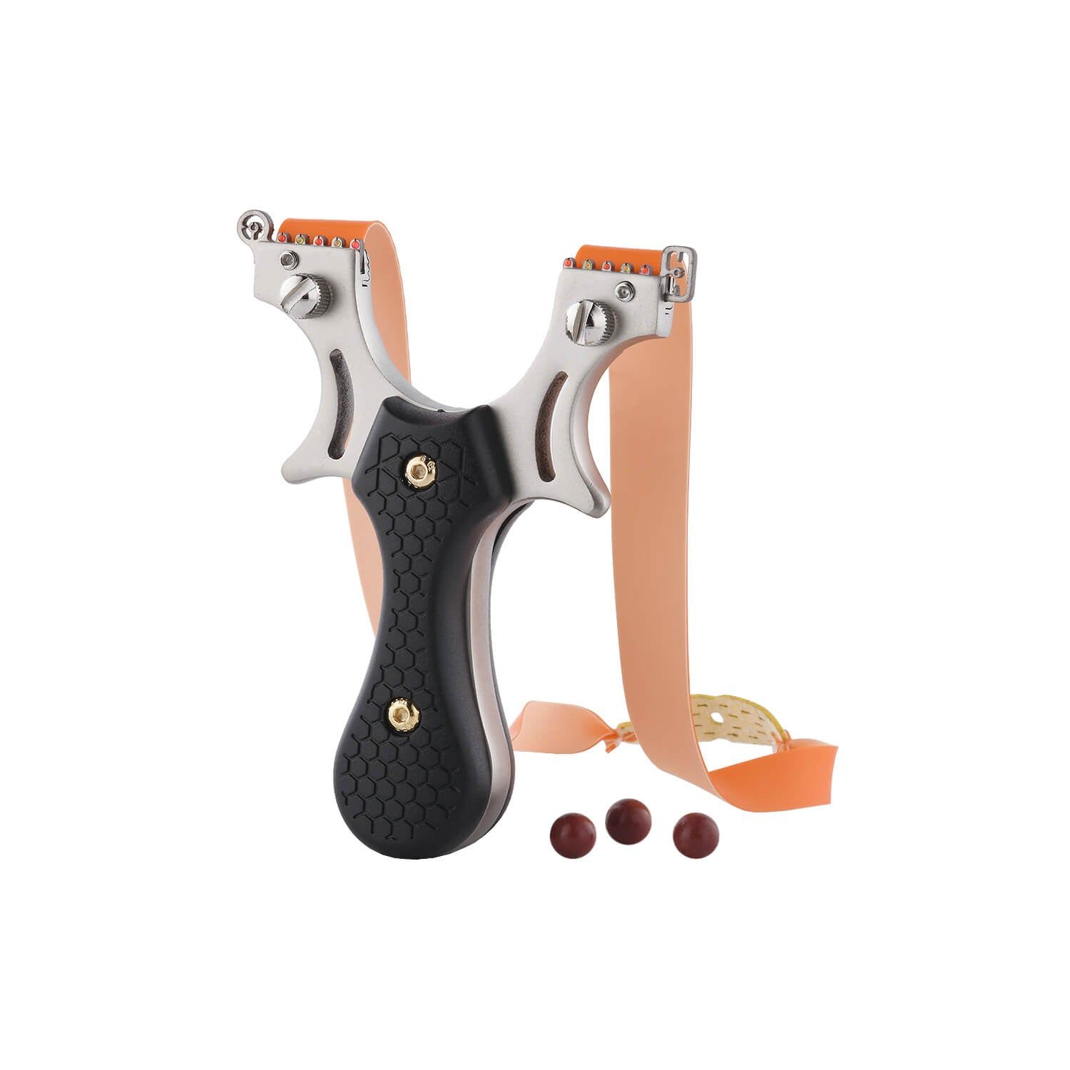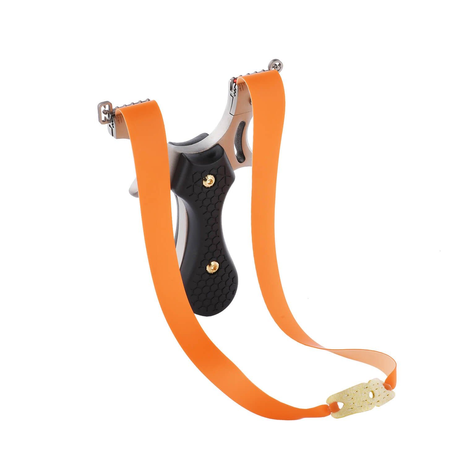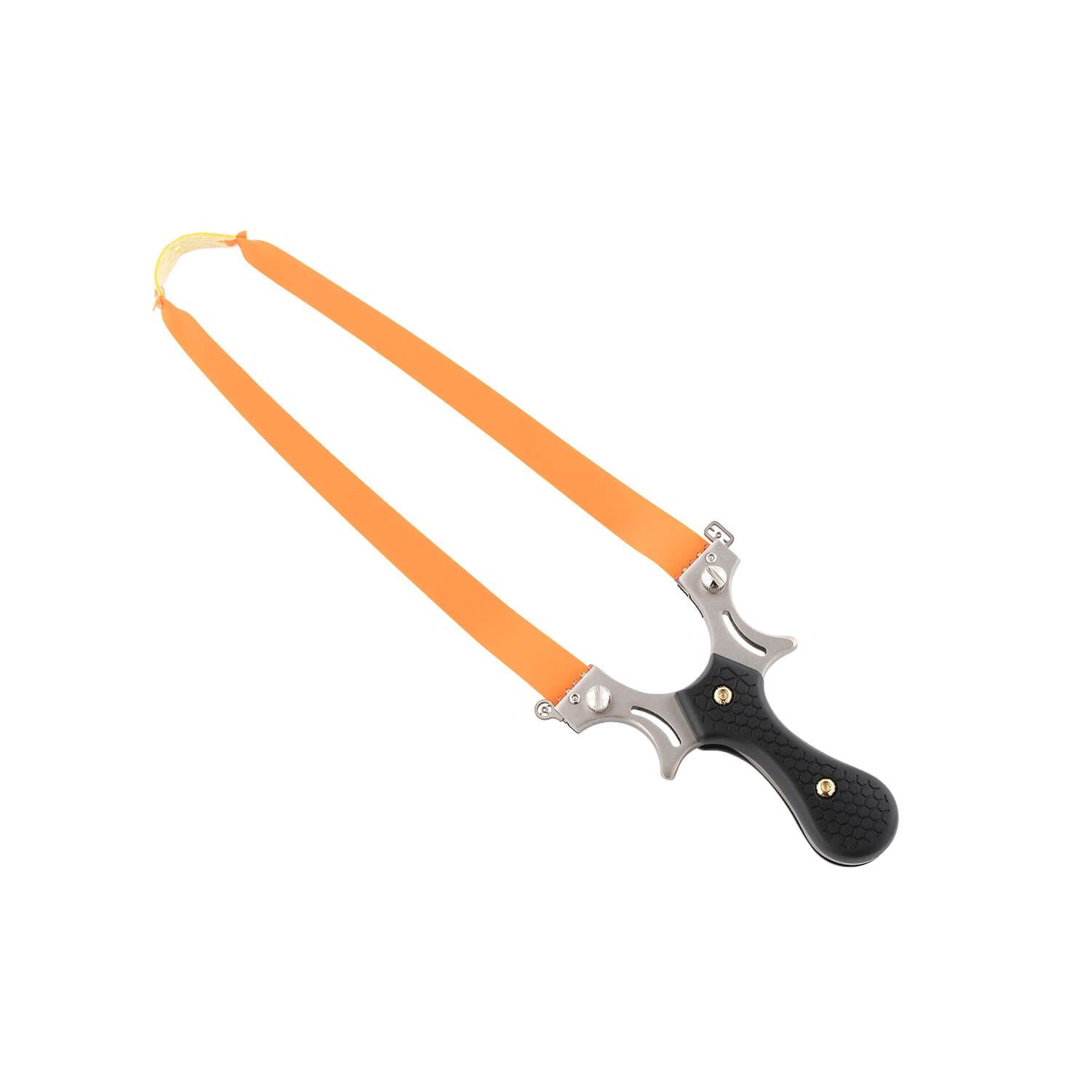 This Ballista 11 tactical slingshot is built for beauty and power. The simple, sleek design boasts two high-tension rubber bands, a non-slip grip, and comes in black and silver.