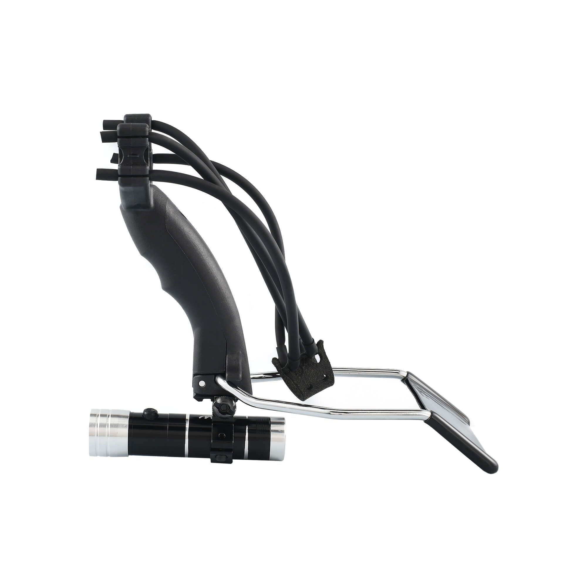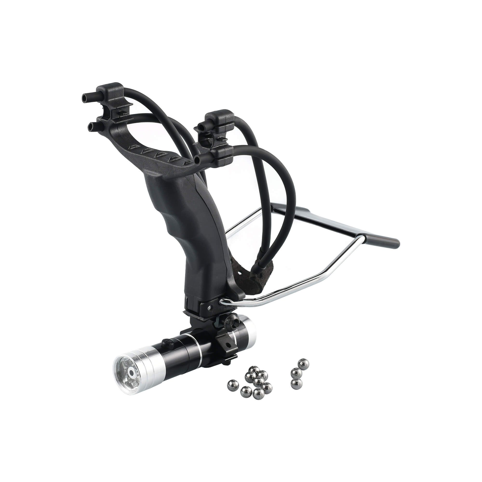 The Ballista 08 comes with tension springs which can accelerate the ammo, two double high-tension rubber bands to give the slingshot superior power, and a wrist guard to steady your shot. A detachable laser sight makes this tactical slingshot a precision instrument.
